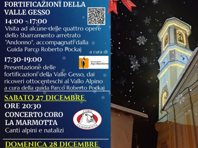 Sabato 20 dicembre, dalle ore 14,00 alle ore 16,00 in località "Cià Lombard" (Comune di Valdieri), vi attende una visita guidata a due fortificazioni situate tra Andonno e Valdieri.