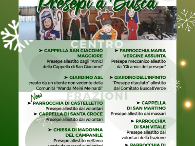 Domenica 21 dicembre 2025, dalle ore 14 alle 17.30, torna “Presepi a Busca”, la manifestazione diffusa dedicata alle rappresentazioni della Natività, giunta alla sua terza edizione.