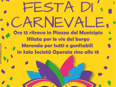Domenica 22 febbraio la Festa di Carnevale arriva anche nel nostro piccolo paese, e noi siamo felici di invitarvi a una giornata di allegria, musica e colori.