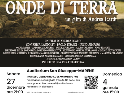 Sabato 27 dicembre alle ore 21.00 e domenica 4 gennaio alle ore 15.00 presso l'Auditorium San Giuseppe di Marene proiezione del film "Onde di Terra": ambientato nelle Langhe degli anni '70, tratta questioni sociali, la pallapugno