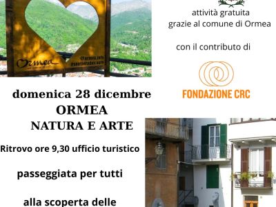 Domenica 28 dicembre "Ormea Natura e Arte", grazie al sostegno del Comune di Ormea e al contributo della Fondazione CRC, siamo lieti di offrire una passeggiata gratuita, alla scoperta dei tesori nascosti del borg