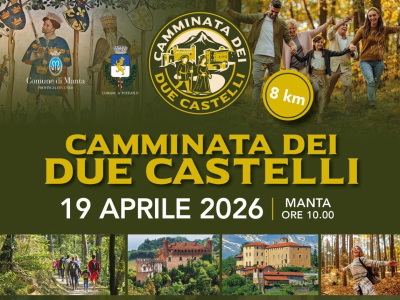 Domenica 19 aprile alle ore 10.00 "Camminata dei Due Castelli": trekking non competitivo di 8 km con partenza dai giardini del Castello della Manta e arrivo al