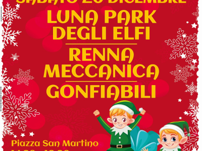 Sabato 20 dicembre, dalle ore 14.30 alle ore 18.30, "Luna Park degli Elfi" con la Renna meccanica ed i gonfiabili, in piazza San Martino.