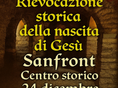 Mercoledì 24 dicembre dalle 21.30 a Sanfront viene riproposta la tradizionale rievocazione storica della natività di Gesù, tra le vie del centro storico: da via Mazzini (parallela alla centrale piazza Statuto) fino a piazza XXIV Maggio e piazza F
