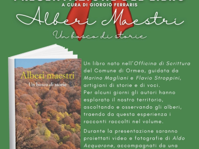 Il Comune di Ormea è lieto di invitare alla presentazione del volume “Alberi Maestri – Un bosco di storie”, nato all’interno dell’Officina di Scrittura guidata da Marino Magliani e Flavio Stroppini, artigiani di racconti e voci.