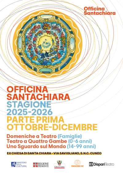 Venerdì 26 dicembre dalle 16.00 alle 18.00 spettacolo teatrale dal titolo "Il bosco delle storie - Racconto di Natale", presso l'Officina Santachiara (ex chiesa di Santa Chiara, via Savigliano, Cuneo). Un’avventura per grandi e piccini, ricca di coraggio, amicizia e magia. Ingresso unico € 4,00. L'evento, della Fondazione TRG di Torino, fa parte della rassegna di Dispari Teatro. Consulta qui il programma completo.