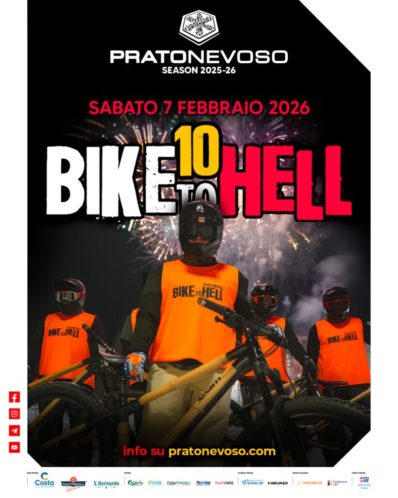 Adrenalina pura e divertimento si fondono nell’evento più originale della stagione: sabato 7 febbraio 2026 a Prato Nevoso torna la “Bike to Hell”, la gara di downhill sulla neve che ogni anno attira ciclisti da tutta Italia, giunta alla sua decima edizione. I partecipanti, in sella alle loro mountain bike, si lanceranno lungo le piste innevate della stazione sciistica, affrontando una discesa che mette alla prova non solo le capacità tecniche, ma anche il coraggio. Clicca qui per iscriverti.