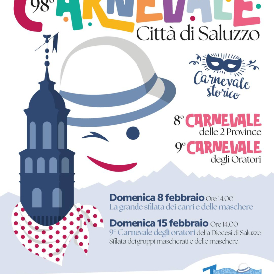Da domenica 8 febbraio prendono il via il 98° Carnevale di Saluzzo, il 9° Carnevale degli Oratori della Diocesi di Saluzzo e l'8° Carnevale delle 2 Province. Programma disponibile sul sito e di seguito.