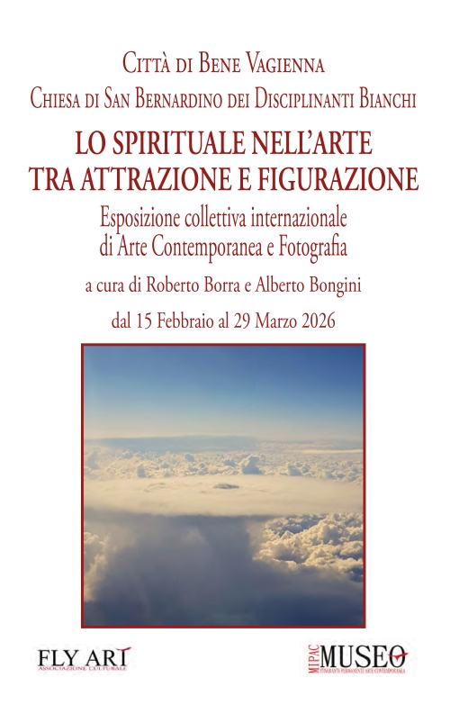 Da domenica 15 febbraio a domenica 29 marzo, la Chiesa di San Bernardino dei Disciplinati Bianchi a Bene Vagienna ospita l’esposizione collettiva internazionale di arte contemporanea e fotografia "Lo spirituale nell’arte, tra attrazione e figurazione", a cura di Roberto Borra e Alberto Bongini. L’inaugurazione si terrà il 15 febbraio alle ore 10.30 e la mostra è visitabile nei giorni festivi dalle 10.00 alle 12.00 e dalle 15.00 alle 18.00. Ingresso libero.