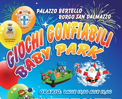 Baby park e giochi gonfiabili a Borgo San Dalmazzo a Palazzo Bertello con apertura al pomeriggio dal 26 al 30 dicembre 2025 e dal 2 al 6 gennaio 2026; sabato e domenica: 20 e 21 dicembre 2025 e dal 10 gennaio al 1 marzo 2026.