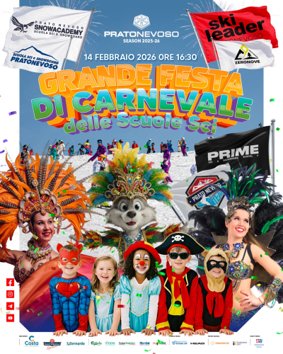 Sabato 14 febbraio ore 16.30 a Prato Nevoso (Frabosa Sottana) grande festa di Carnevale con le scuole di sci per grandi e piccini. Maggiori informazioni e prenotazioni presso le scuole di sci, clicca qui per i contatti.